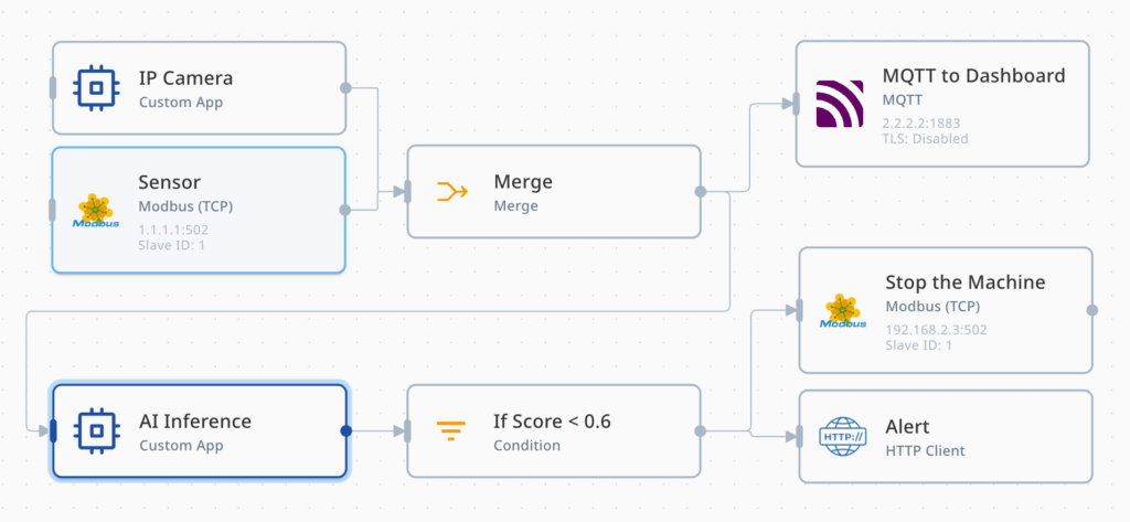 在工業現場,設備數據來自不同協議、不同格式、不同頻率的感測器。NeoFlow 將這些異質數據在邊緣端即時匯聚、清洗與轉換,並與 Edge AI 模型推論結果進行交叉比對,形成跨模態的智慧決策流程——不需上傳雲端,不需等待回應,就地完成從感知到行動的閉環。